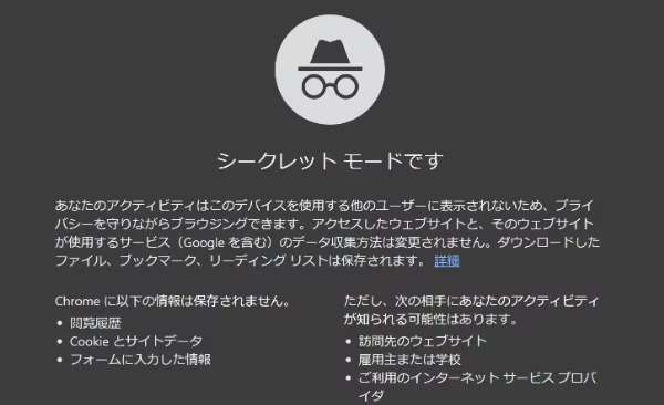 Chromeにはシークレットモードといって、検索履歴などが全く残らない機能があります。