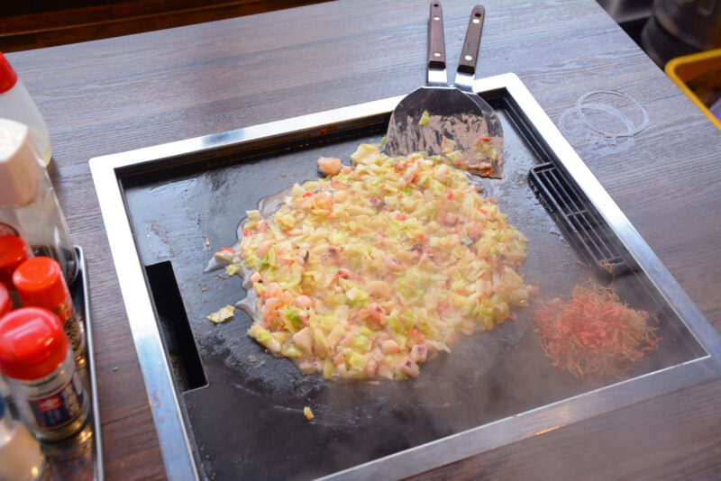 もんじゃ焼きの最大の魅力は、2人で1つのもんじゃをシェアして食べること。